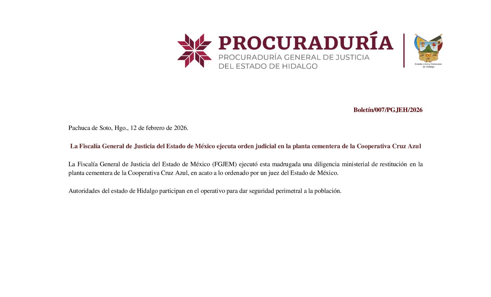 #CruzAzul #Hidalgo #EstadoDeMéxico #Seguridad #Fiscalía #Operativo #Justicia #PGJEH